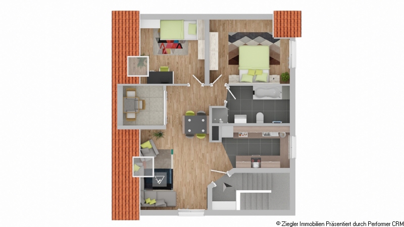 Diese hübsche Wohnung befindet sich im Dachgeschoss eines gepflegten 3-Familien-Hauses und verfügt über folgende Raumaufteilung: Offener Wohn-und Essbereich mit Zugang zu Küche und Balkon, Arbeitszimmer, Schlafzimmer, Tageslichtbad. Zur Wohnung gehören ein Außenstellplatz vor dem Haus sowie ein Kellerraum. Alle Bewohner haben die Gelegenheit den Bereich hinter dem Haus zum Grillen zu benutzen. Die Eigentümer bewohnen die Einheit selbst und ziehen zwischen April und Mai aus.Ausstattung