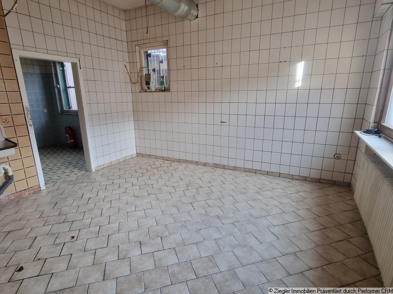 Dieses 2-Familien-Haus wurde bisher als Wohn- und Geschäftshaus genutzt. Im Erdgeschoss befinden sich ehemalige Gasträume, während Ober- und Dachgeschoss zu Wohnzwecken dienten. Raumaufteilung: Erdgeschoss (bisher gewerblich genutzt): Zwei großzügige Gasträume, Damen- und Herren-WC's, Flur sowie Küche mit separater Vorratskammer. Zugang zum gemütlichen Innenhof; zusätzlicher Raum im Außenbereich, erreichbar über den Hof. (Der Primärenergiebedarf des gewerblichen Teils liegt bei 643,7 kWh/(m²*a) Obergeschoss: Vier Schlafzimmer, Gäste-WC, Tageslichtbad, großer Flur mit Terrassenzugang, Küche mit Zugang zu einem weiteren Zimmer. Dachgeschoss: Schlafzimmer, sanierungsbedürftiges Bad und Wohndiele. Zum Haus gehören drei Garagen.Ausstattung