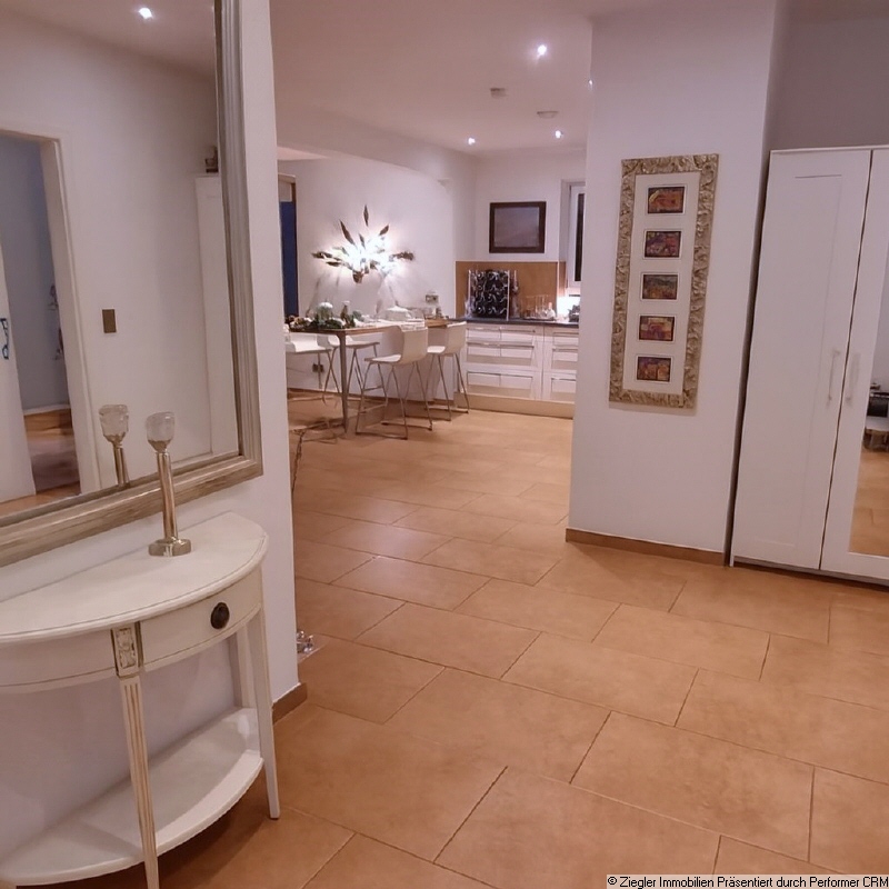 Das Haus ist modern und hochwertig ausgestattet. Details zur Ausstattung: - 3-fach verglaste Fenster - Beheizung über Luft-Wasser-Wärme-Pumpe (auch zur Wasser-Erwärmung), in Kombination mit Solartechnik - Lüftungssystem mit Wärmerückgewinnung - Fußbodenheizung - Stäbchenparkettboden in allen Wohnräumen - hochwertige terracottafarbene Fliesen in Küche, Badezimmer, Kochbereich, Flur und Entrée - Kaminofen mit Panorama-Fenster - großzügige Terrasse mit Glasdach und Markise - elektrische Rollläden - seitlich des Hauses gelegene Orangerie mit vorgelagerter Pergola - 5.000 Ltr. Regen-WassertankLage