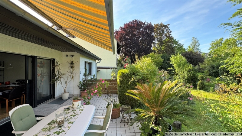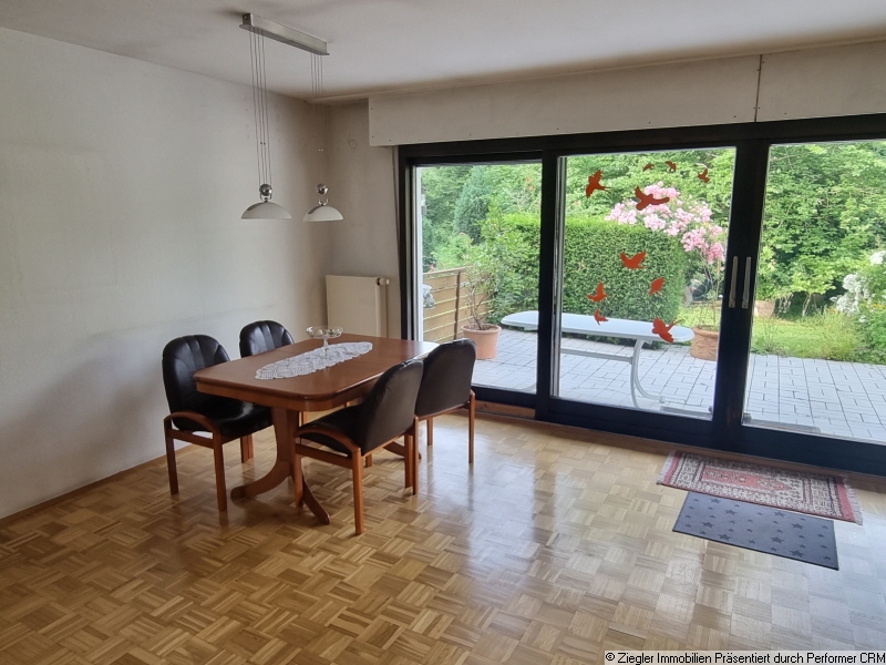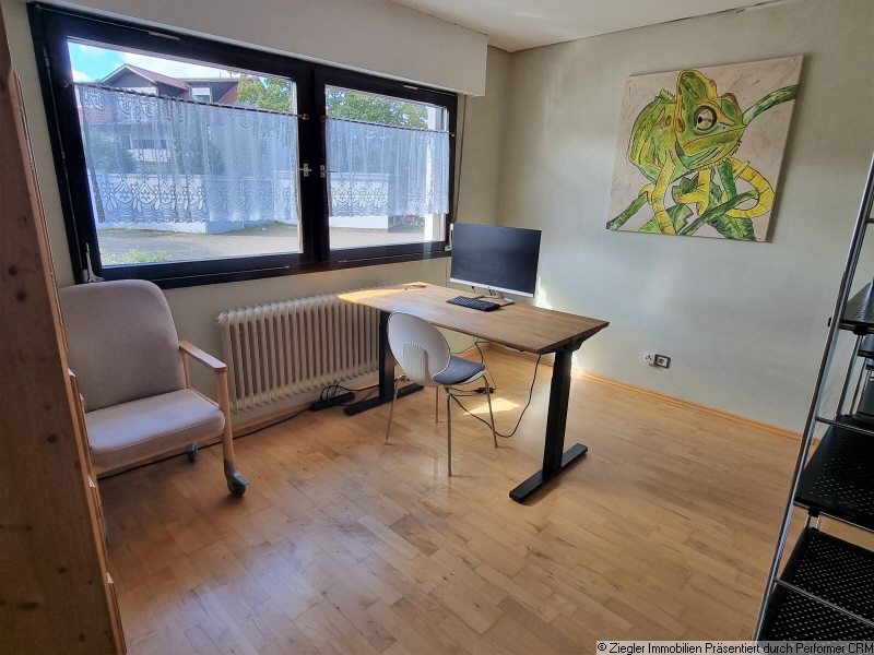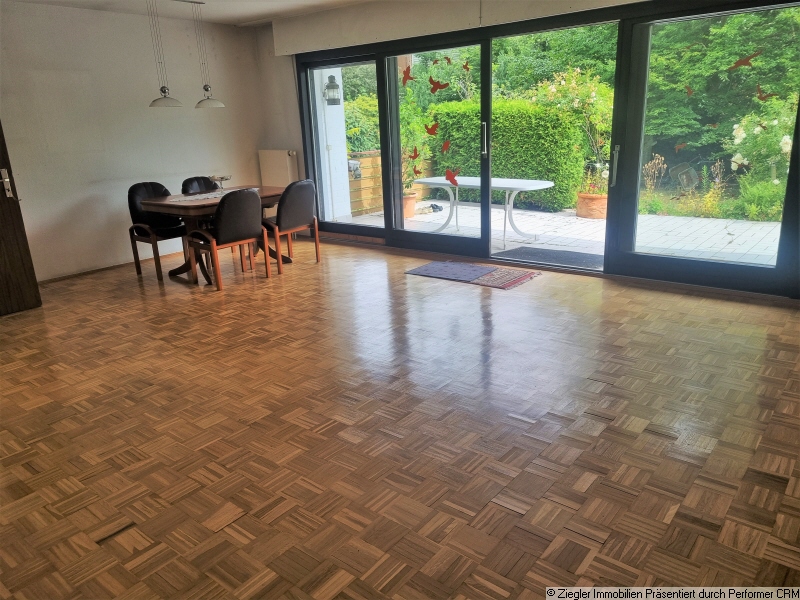 Das freisteh. 1-Fam.-Haus befindet sich auf einem 700 qm großen Grundstück. Die große Terrasse bietet schöne Sitzgelegenheiten, die zum Verweilen und Entspannen mit Familie und Freunden einladen. Der Garten ist liebevoll und pflegeleicht angelegt. Die Wohnfläche mit ca. 165 m² befindet sich auf zwei Ebenen, die Raumaufteilung gestaltet sich wie folgt: Erdgeschoss: Eingangsbereich mit Diele und Garderobe, Gäste-WC, Küche mit Einbauküche und Essplatz, Wohn- und Essbereich mit Zugang zur großen Terrasse und dem Garten mit Gartenhaus, ein großes Schlafzimmer sowie ein Arbeitszimmer und ein Tageslichtbad mit Dusche und zwei Waschbecken; Gartengeschoss: Großes Zimmer mit Gartenblick sowie zwei weitere geräumige Zimmer, ein Tageslicht-Duschbad, Diele; Kellerräume: Heizraum, Tankraum, Vorratsraum. Das Anwesen befindet sich in einem gepflegten, guten Zustand. Zum Haus gehören eine Garage, ein schöner Vorgarten und ein PKW-Stellplatz vor der Garage.Ausstattung