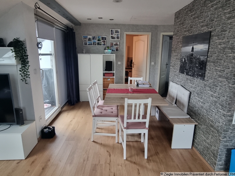 Diese hübsche Wohnung befindet sich im Dachgeschoss eines gepflegten 3-Familien-Hauses und verfügt über folgende Raumaufteilung: Offener Wohn-und Essbereich mit Zugang zu Küche und Balkon, Arbeitszimmer, Schlafzimmer, Tageslichtbad. Zur Wohnung gehören ein Außenstellplatz vor dem Haus sowie ein Kellerraum. Alle Bewohner haben die Gelegenheit den Bereich hinter dem Haus zum Grillen zu benutzen. Die Eigentümer bewohnen die Einheit selbst und ziehen zwischen April und Mai aus.Ausstattung